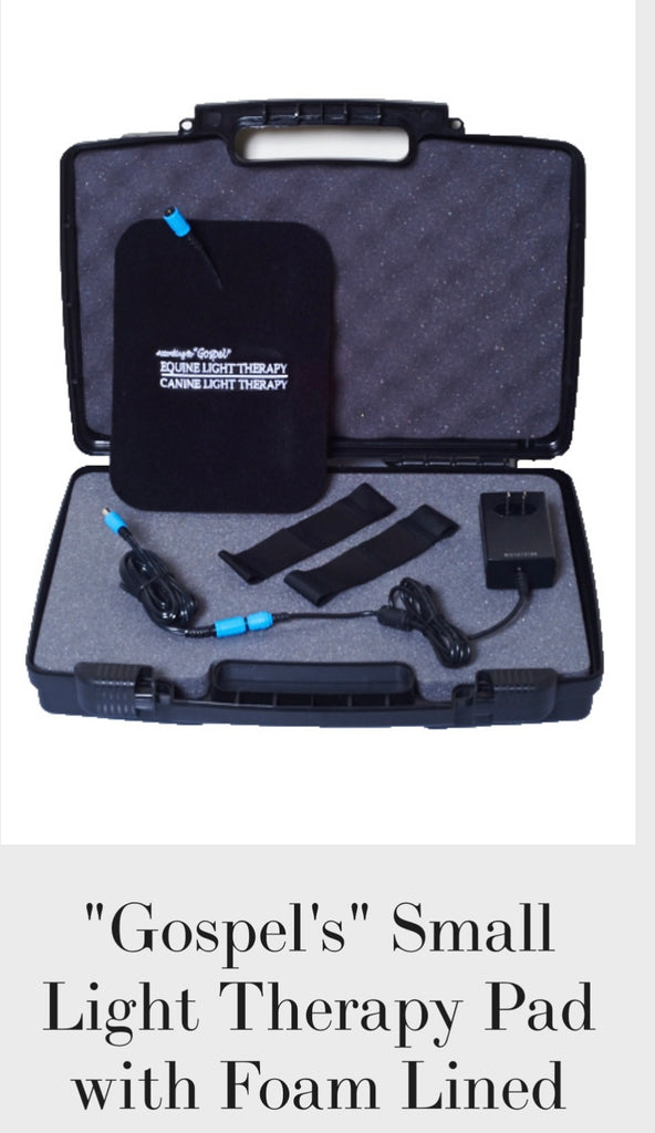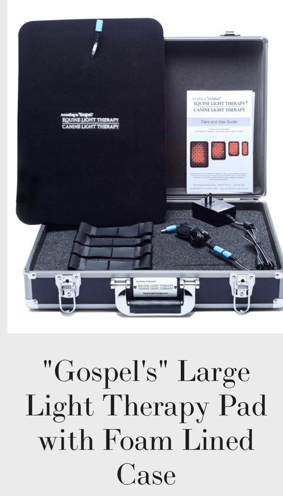 Many people ask why our company is called According to "Gospel"... Our company is named for our horse Gospel Hour who developed a severe case of laminitis after a surgery to repair an old injury in 1999. At that time, we were looking for a way to help Gospel, not begin a business, but as word spread, people started to ask us to help their animal friends and Gospel's light pads became a business. Our goal is to provide quality light therapy products that are safe, effective and affordable, great light therapy products for both horse and dog owners and for health care professionals and trainers.