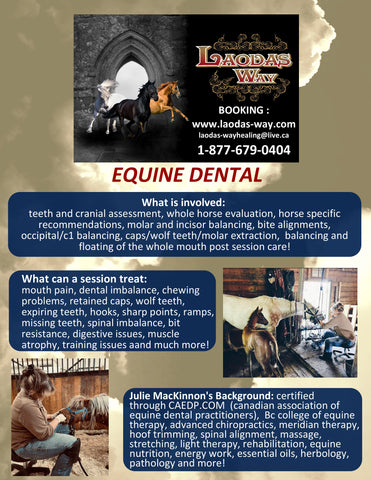 Equine Dentistry Hi there š¤ Our equine dentalĀ sessions are either booked when we are in your area at barns we have set up or haul ins are welcome at our facility for any number of bookings. If you have 5 or more animals to do we can also book a day at your facility/barn. Julie is a certified equine dentist. Any questions let us know. Visits require a pre paid deposit of $100 to book your dental spot. On average dental sessions are $200-225 plus tax. Sometimes extra costs apply for things like extractions etc. Meds and travel are extra and charged at cost. It takes approx 1 hr to 1.5 hr for the session. Typically we recommend post dental pain herbs or liniments to help your horse adjust. These are extra but minimal cost. Our sessions are focused on addressing current dental needs and long term care. Let us know if you would like to book š We require Name Email Phone # to book Area you are in (so we can book you at our nearest facility) Or if you would like to haul in.Ā